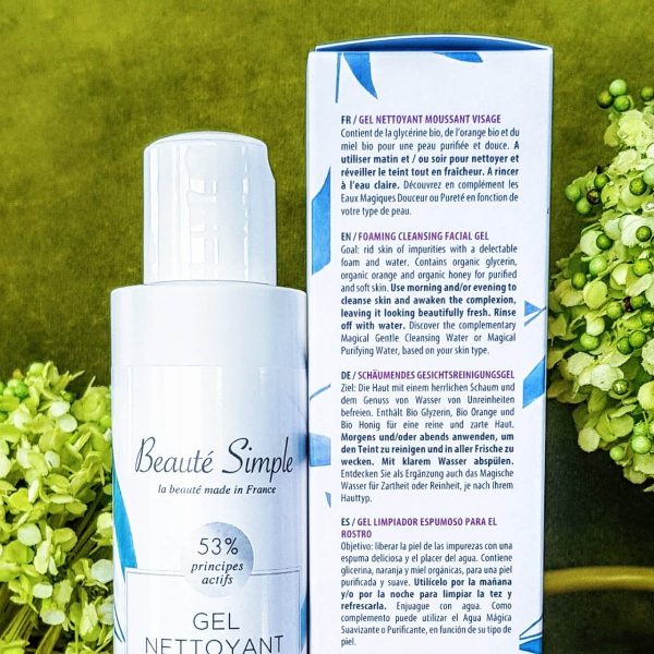 Chaque soir, après vous être soigneusement démaquillée, appliquez le gel nettoyant moussant Beauté Simple sur l’ensemble de votre visage. Utilisez vos doigts pour masser votre peau en douceur en effectuant des mouvements circulaires sans négliger aucune zone. Laissez agir quelques secondes puis rincez à l’eau claire et tiède.