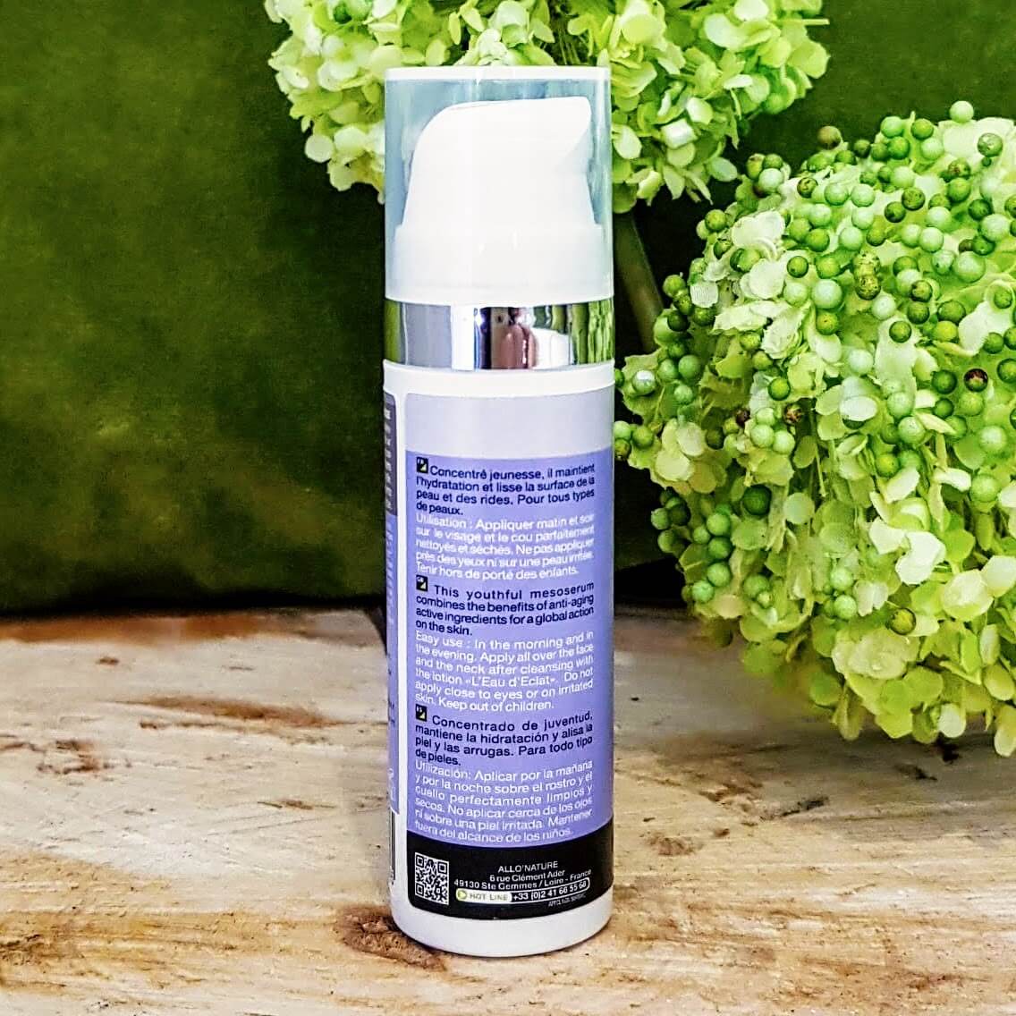 Matin et soir, prélevez une noisette de MesoSérum jeunesse AlloNature et appliquez sur l’ensemble du visage et le cou préalablement nettoyés et séchés.