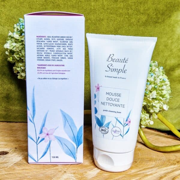 Sur une peau préalablement humidifiée, appliquez la mousse douce nettoyante Beauté Simple du bout des doigts en réalisant des mouvements circulaires. Rincez à l’eau claire.