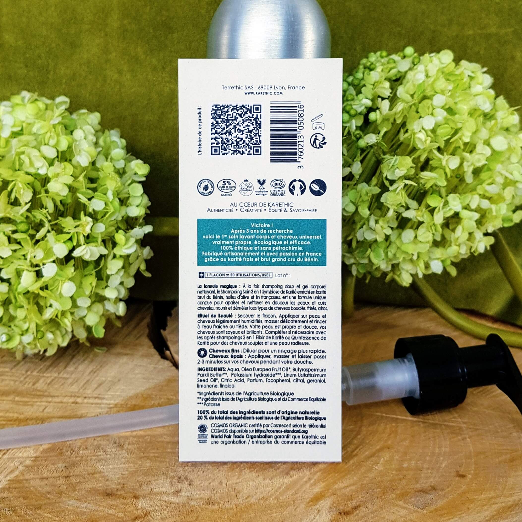 Secouez le flacon avant de prélever une noisette du shampoing 3 en 1 Symbiose Karité. Appliquez sur la peau et les cheveux légèrement humidifiés, puis massez délicatement avant de rincer à l’eau tiède. Attention, cette formule ne convient pas aux cheveux teintés ou colorés avec une coloration chimique synthétique. Diluez le shampoing sur des cheveux fins pour un rinçage plus rapide. Sur les cheveux épais, laissez poser 2 à 3 minutes.